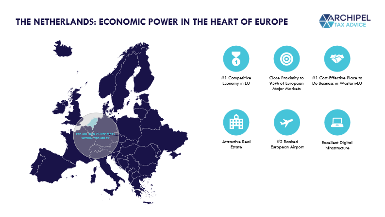 With over 170 million consumers within a 300-mile radius, world-class infrastructure including Europe’s largest port in Rotterdam and a major air cargo hub at Schiphol, and a highly skilled, English-speaking workforce, the country is a central node in global trade and logistics. It ranks among the world’s top economies, placing fifth in global competitiveness and innovation indices. By having a Netherlands holding company and local operations means that your company is located in an economically powerful country and strategically located at the crossroads of major European markets: Germany, France, and the UK.