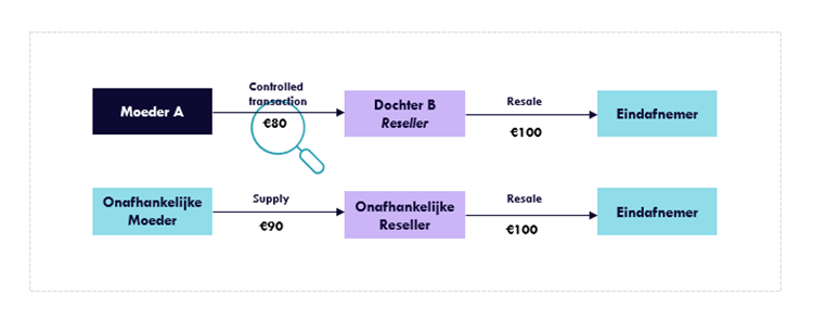 De Resale Price Methode bepaalt de marge die een Reseller moet maken op een bepaalde transactie. De marge wordt vergeleken met de marge die een Reseller maakt in het geval van onafhankelijke partijen.